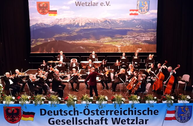 Am 3. Januar gastierte das Johann-Strauß-Orchester Wiesbaden zum dritten Mal in Jahresfolge auf Einladung der Deutsch-Österreichischen Gesellschaft Wetzlar zum Neujahrskonzert in der Stadthalle. Und erfüllte dort erwartungsgemäß die musikalischen Erwartungen eines Publikums, das in der Größenordnung von fast 500 Freunden klassischer Wiener Melodien – und darüber hinaus – vom DÖG-Vorsitzenden Hans-Jürgen Irmer begrüßt wurde.