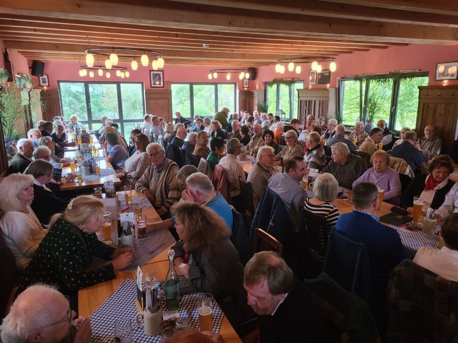 Der obere Raum im Paulaner war mit 100 Mitgliedern der Deutsch-Österreichischen Gesellschaft voll, die sich zum ersten Weißwurst-Frühschoppen mit musikalischer Begleitung von Sabine und Michael, Weißwurst, Obatztem, Dreierlei aus Bayern und Handkäs mit Musik zusammengefunden hatten.